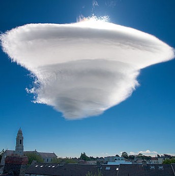- Лінзоподібні хмари, також відомі як “лінзи” за свою характерну форму, часто вказують на наближення чогось потужного. У поєднанні з посиленням вітру часто означають, що протягом наступних 6–24 годин наближається шторм.