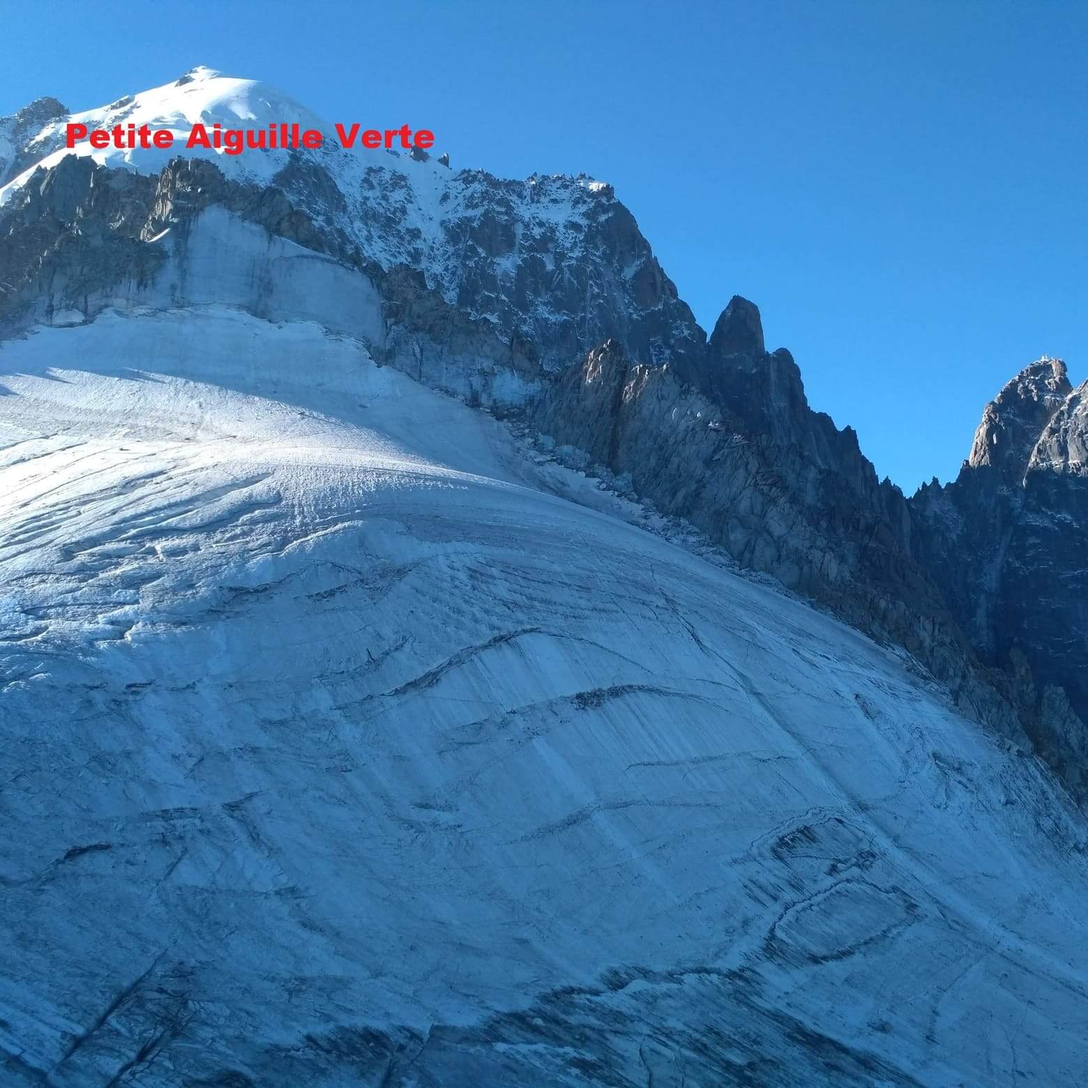 Вершина Petite Aiguille Verte та льодвик під нею. Вид з верхньої станції Grand Montets.