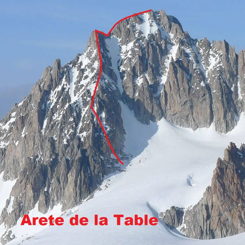 Крім Chardonnay однією з основних вершин району є Aiguille du Tour (3540 м). На неї є декілька нескладних маршрутів простих категорій, а також дуже класна AD Arete de la Table (“Столовий” гребінь) – теж родзинка району. Короткий приємний маршрут, фішкою якого є пролаз під велетенською брилою, яку і називають столом. Цю брилу видно з самого низу льодовика ще на підходах. Вона величезною масою ніби балансує на жандармах гребіня. А найкрутішим є те, що ти можеш залізти на неї. Повір, для тих, хто іде по льодовику чи лізе десь недалеко – це буде дивовижне видовище! Після столу ще трохи нескладних скель на шляху до дуже красивого гребеня з купою скельних голок та жандармів. Спуск з вершини класичним маршрутом, практично пішки до льодовика і вниз по ньому.