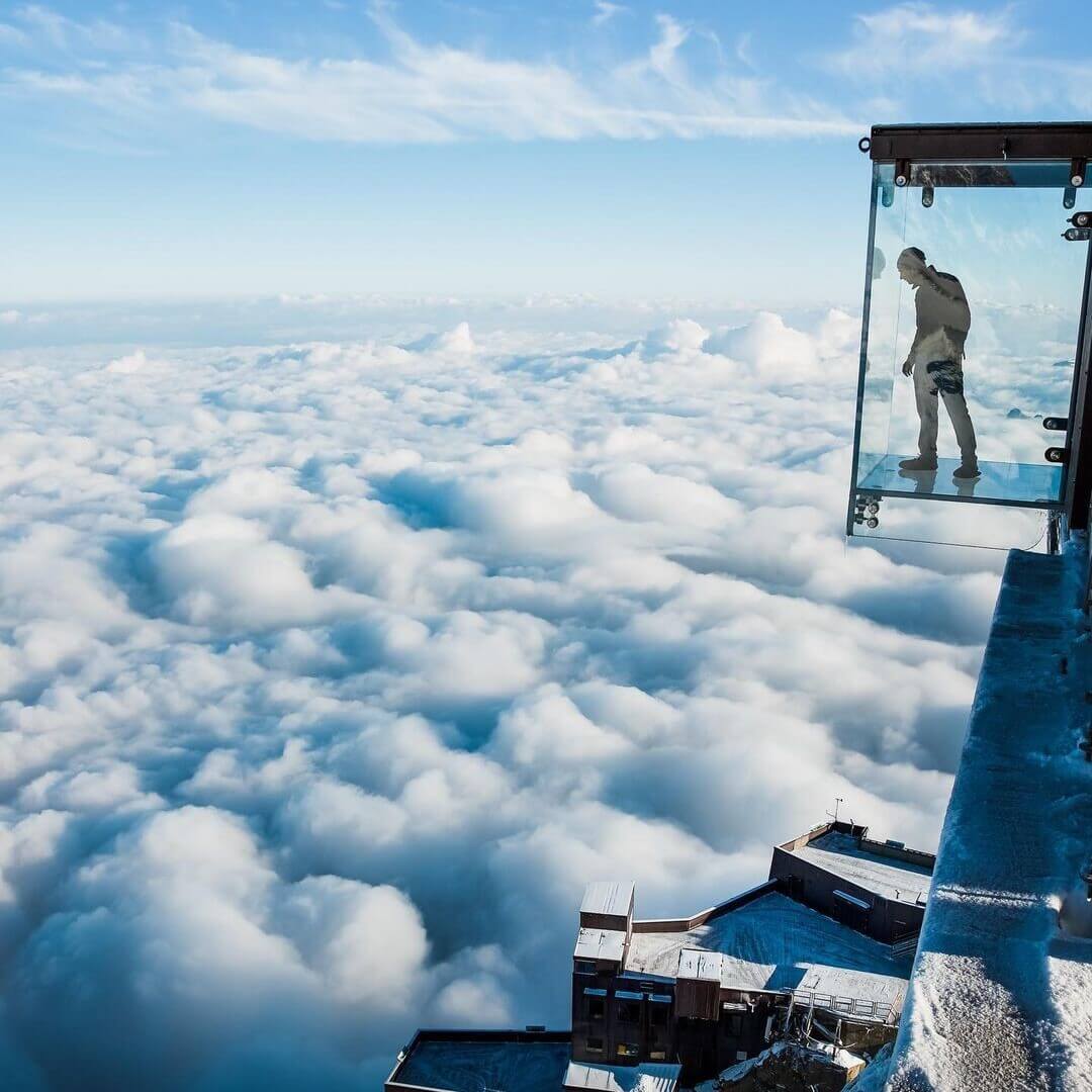 Aiguille du Midi Téléphérique – найвища в світі безопорна канатна дорога, а також канатна дорога з найбільшим в світі вертикальним перепадом (з 1035 м до 3842 м). Це не тільки височезна канатка, бо родзинкою є ще й будівля верхньої станції. Всі приміщення фактично вбудовані в вершину. А це багато рівнів з оглядовими кімнатами, кафе, кіосками і т.ін. Особливою популярністю у туристів користується атракціон Step into the Void, де ти заходиш в винесену над прірвою кімнату зі скляною підлогою.