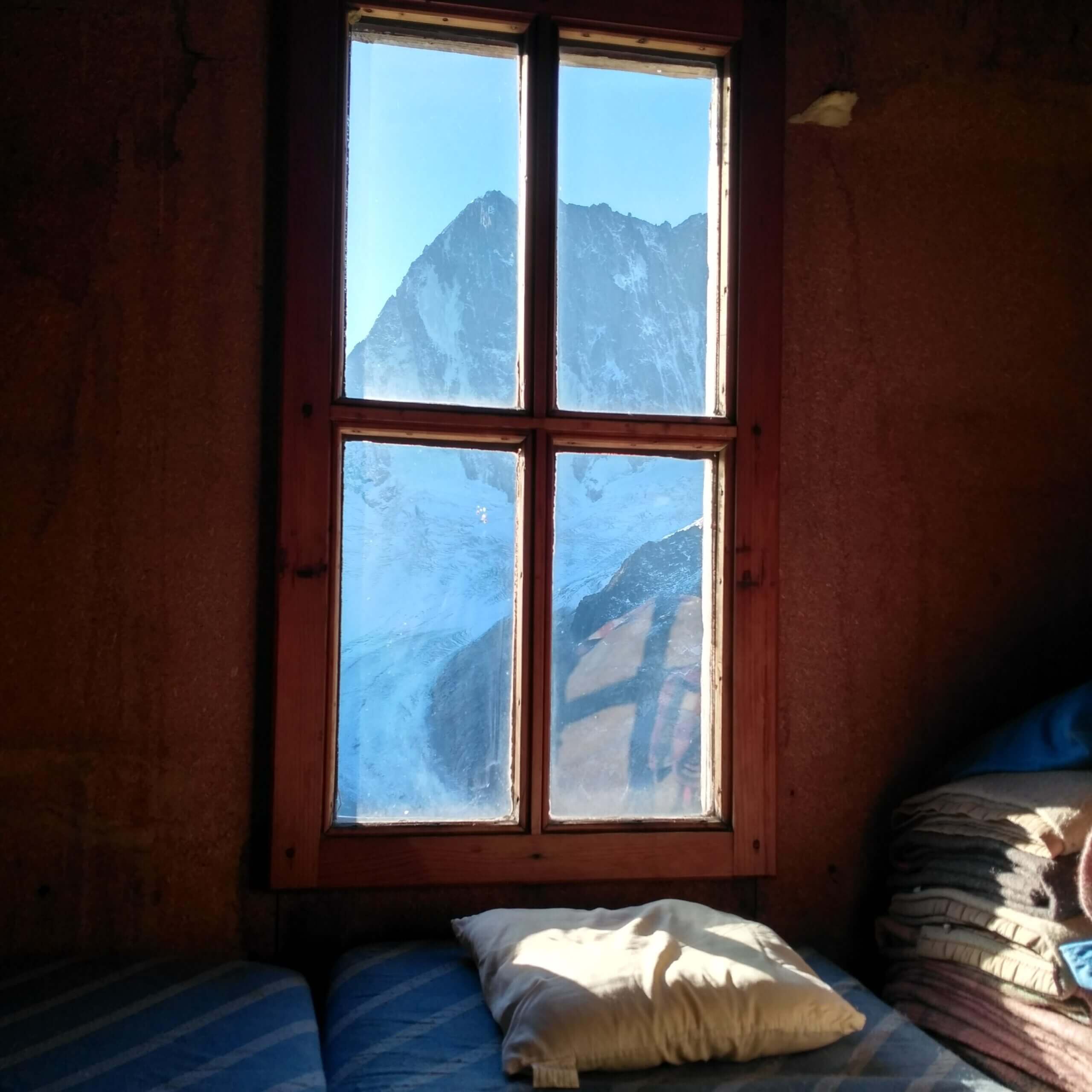 З зимової кімнати притулку Couvercle чудово видно Grand Jorasses.
